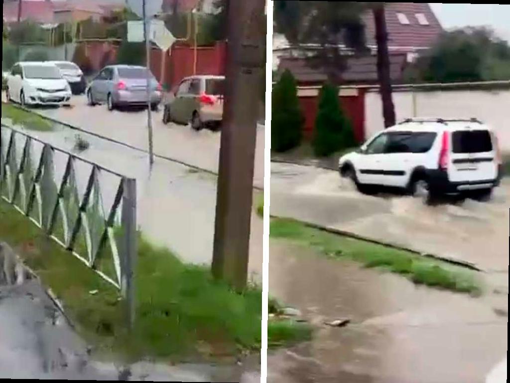 После залпового ливня днем 20 июля дорогу в сочинском селе Веселое затопило. Видео с автомобилями, преодолевающими улицу Мира, появилось в социальных сетях.
