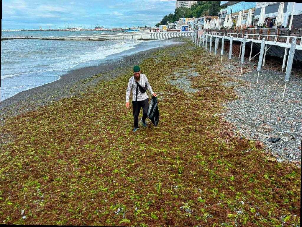 Циклон, который затронул Сочи в последние дни, проходит. Но сейчас пляжи еще закрыты из-за уборки после непогоды. Работники очищают от мусора и водорослей береговую линию и пешеходные дорожки, а также моют брусчатку на набережных.