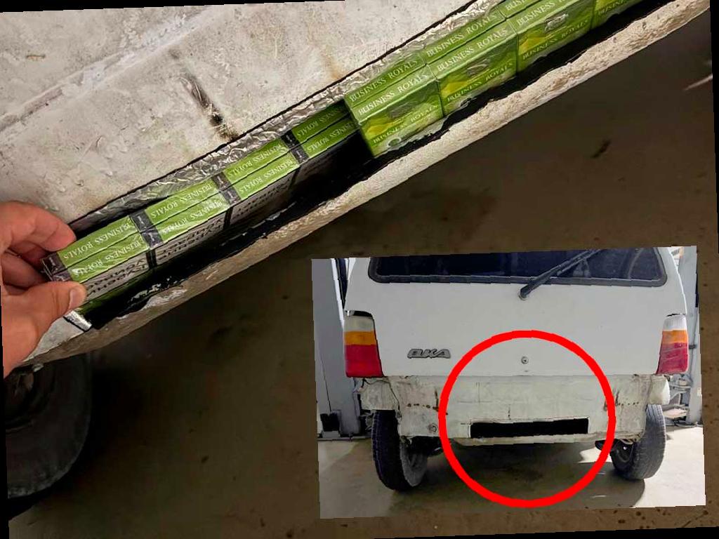 При досмотре автомобиля специальными средствами выяснилось, что у владельца был необычный тюнинг. За задним бампером была спрятана ниша, в которой находилось более 450 пачек сигарет «Business Royals» из ОАЭ.