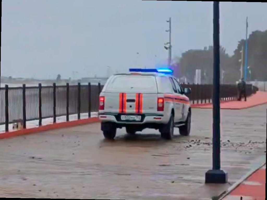 В городе Сочи и Сириусе продолжает действовать штормовое предупреждение. На одной из набережных курорта были засняты спецтранспорт с мигалками, показывающими опасность ситуации. Обеспокоены высокими волнами и обильными осадками, которые могут представлять угрозу для отдыхающих. Через громкоговоритель они предупреждают их оставить зону набережной на безопасное расстояние.