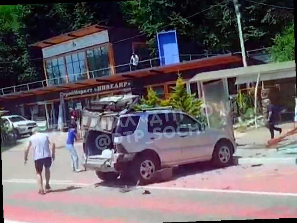 В Сочи произошло ДТП: автомобиль без водителя столкнулся с остановкой, пострадали люди