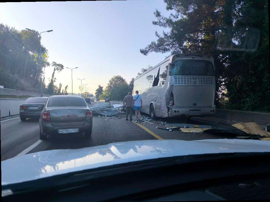Сегодня утром на трассе «Сочи — Адлер» случилась авария. По информации из телеграм-канала «ДТП Сочи», грузовик «Газель» не справился с управлением и врезался в автобус, двигавшийся впереди.