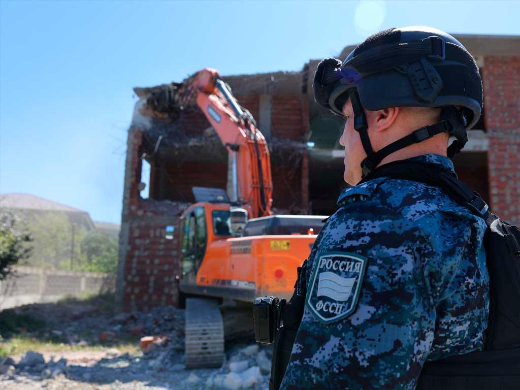 Один из объектов — трехэтажный многоквартирный дом площадью 450 квадратных метров. Владелица этого дома наняла специализированную организацию только после того, как ей было ограничено выезд из Российской Федерации. Второй объект, площадью 840 квадратных метров, также подлежал сносу после того, как его владелец трижды привлекался к административной ответственности и ограничили его в выезде из страны.