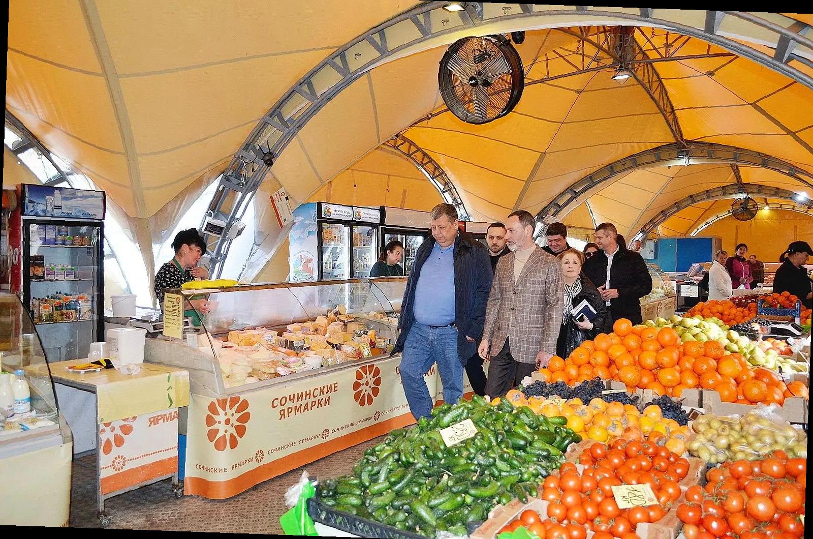 Депутат Законодательного Собрания Краснодарского края, представитель фракции «Единая Россия» Виктор Тепляков осмотрел работу муниципальной ярмарки в микрорайоне Ареда. В инспекции участвовали директор АНО «Сочинские ярмарки» Олег Андреев, депутаты ГСС Микаел Багманян, Светлана Ермилова, а также сотрудники администрации города.