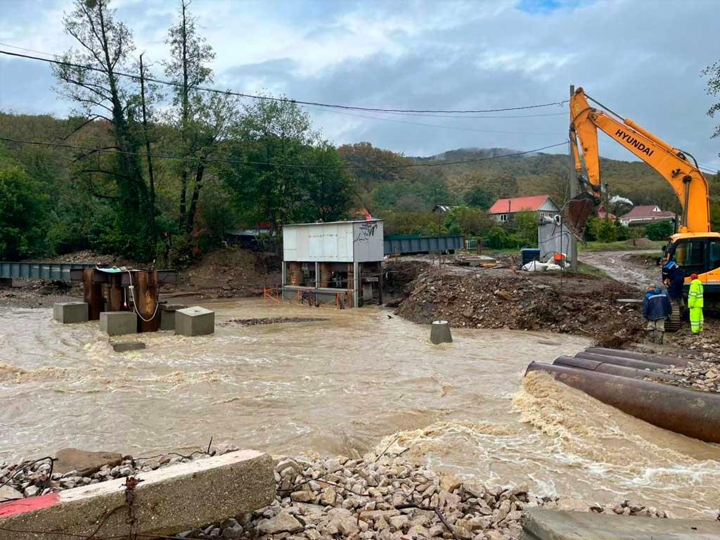 Мост через реку Шапсухо был разрушен во время сильных ливней в августе. Временная переправа, построенная на замену, была повреждена в результате обильных дождей прошлой ночью. Также пострадал деревянный мост.